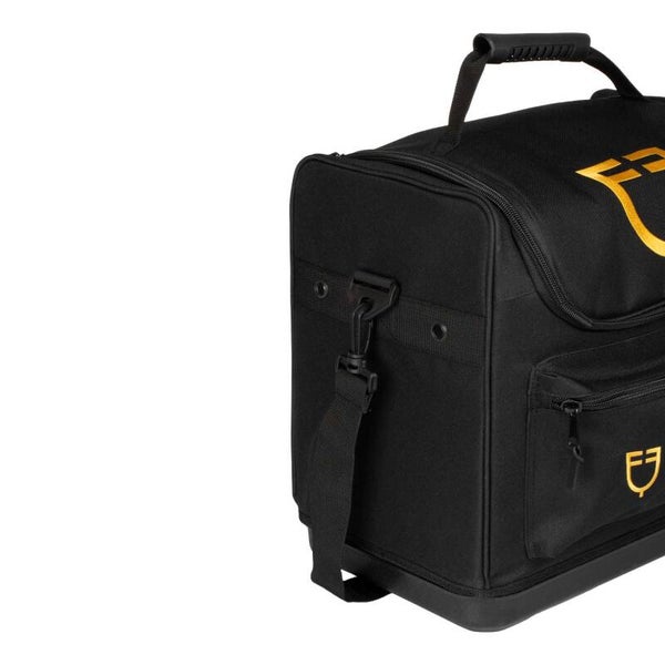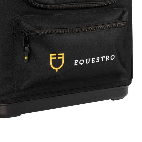 Unser Engagement für Qualität spiegelt sich in den Details wider: Das Equestro-Logo und der Schriftzug sind sorgfältig auf die Vordertasche gestickt und verleihen dem Gesamtdesign der Tasche einen Hauch von Klasse und Authentizität.