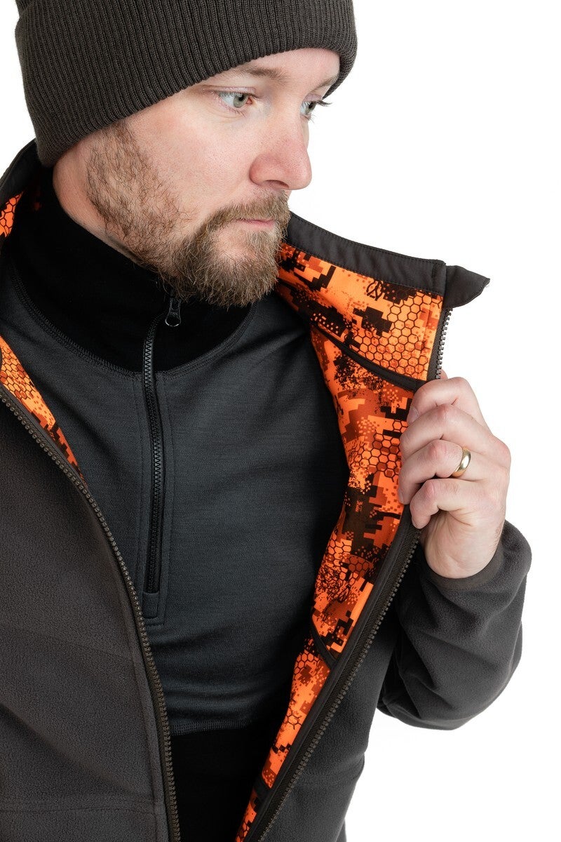 - Wendejacke mit orangefarbener Digicamo-Seite und einer bequemen Fleece-Seite