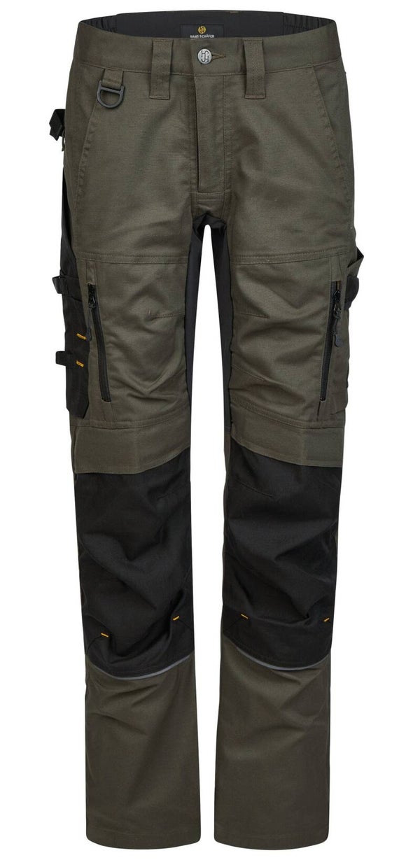 Zwei Seitentaschen und zwei Gesäßtaschen, diverse Beintaschen inkl. Zollstocktasche und zwei Kniepolstertaschen (Kniepolster nicht enthalten), sowie eine Smartphone-Tasche statten die Hans Schäfer Arbeitshose Amazone praktisch aus.